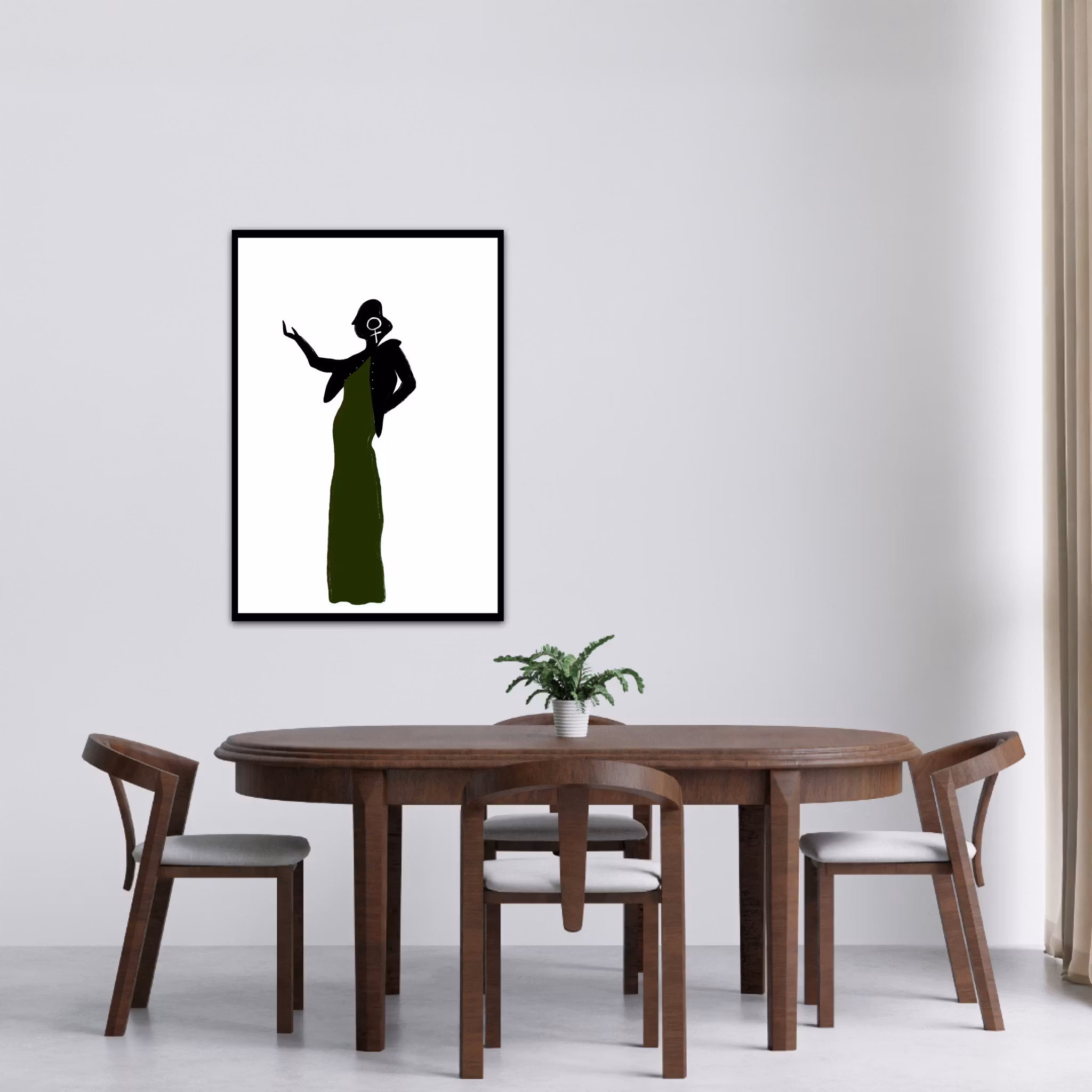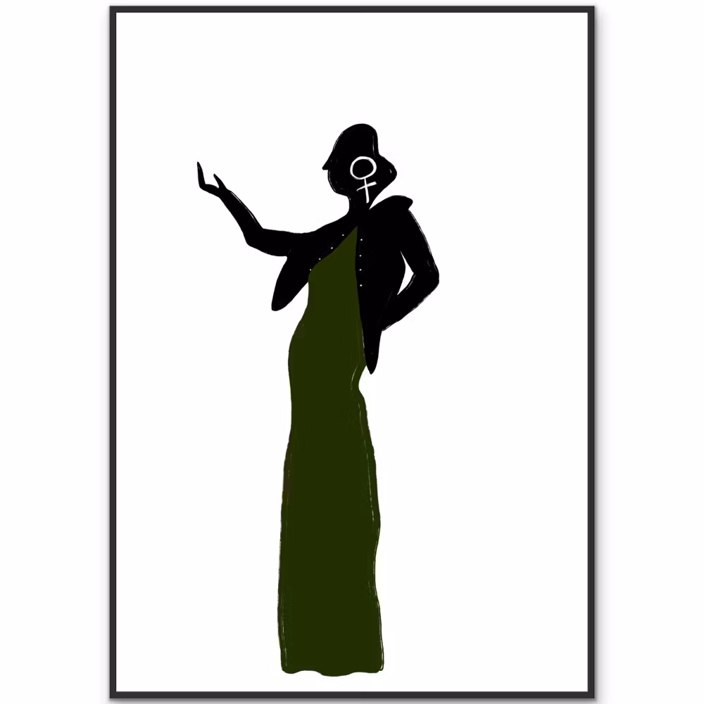A poster of a woman with a green dress and the biggest earrings you could find.